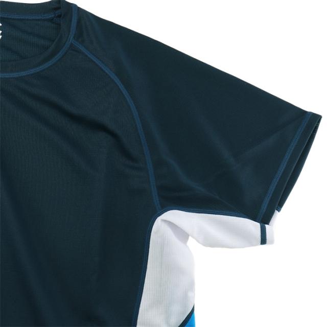 また、肌面サイドに撥水糸を使用する事で汗によるベタつきを軽減させコンフォート性を向上させます。