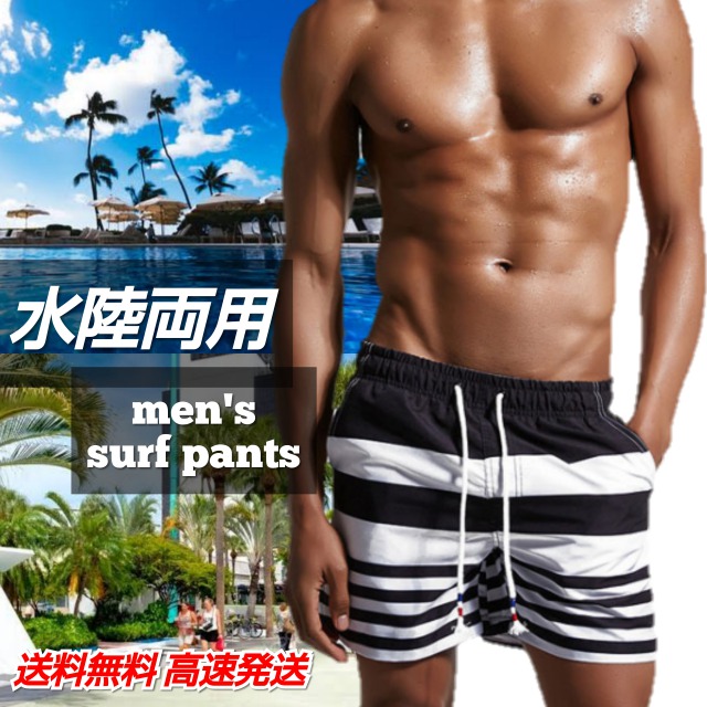 水着 メンズ サーフパンツ ハーフパンツ 水陸両用 2020 トレンド ボーダー メッシュインナー 海パン ビーチショーツ ショートパンツ サーフィン スイムウェア サーフショーツ ラッシュガード 海水パンツ リゾート M L XL 送料無料