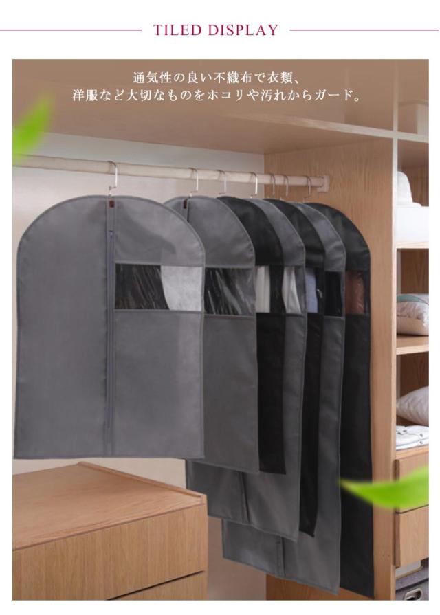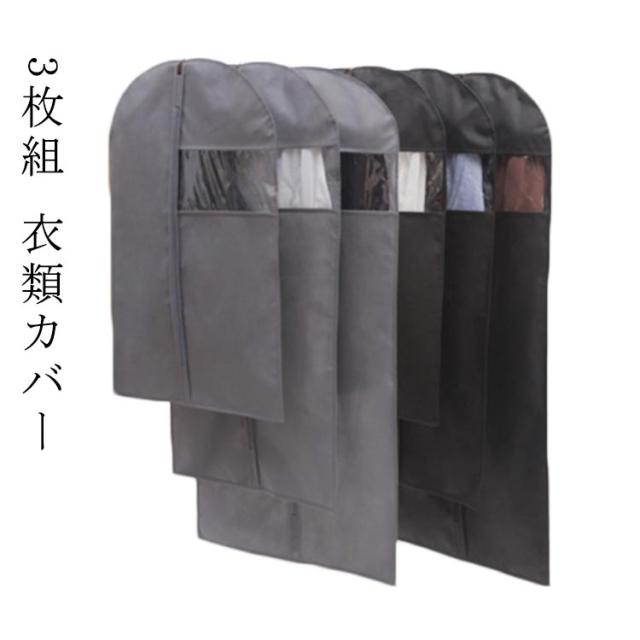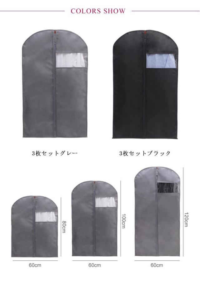 3枚組 衣類カバー まとめて収納 不織布製 通気性 スーツサイズ クリア 窓付 吊り下げ ファスナー 防塵 防虫 防湿 実用 ハンガーラック カバー パイプハンガー ハンガーラックカバー 60cm*80cm 60cm*100cm 60cm*120cm