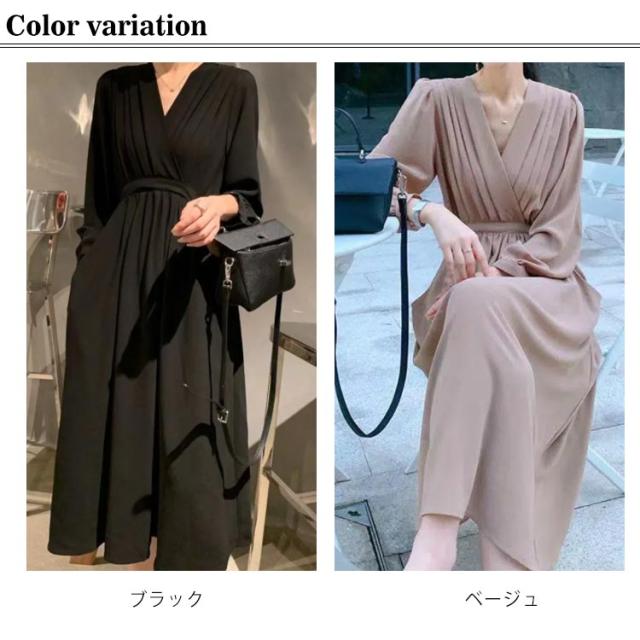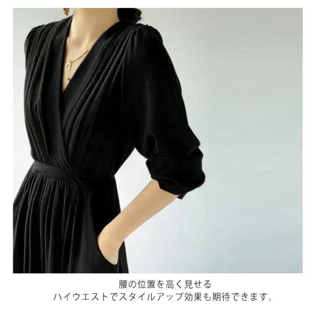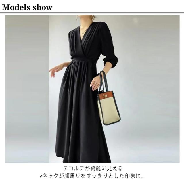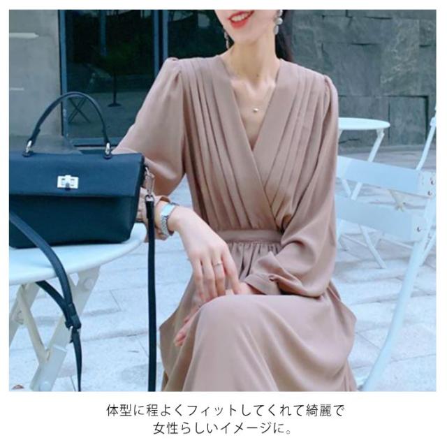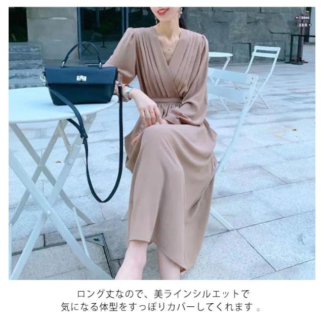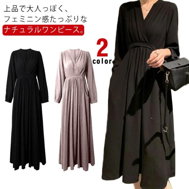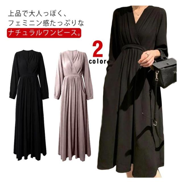 ワンピース プリーツ レディース 春秋 マキシ丈 ロングワンピース Vネック 体型カバー きれいめ 通勤 入園式 卒業式 ゆったり お呼ばれ エレガント お洒落 フォーマル 送料無料