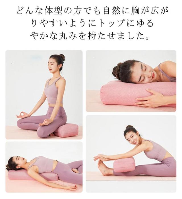 | リラックスしてヨガを楽しむための補助クッションが発売中! どんな体型の方でも自然に胸が広がりやすいようにトップにゆるやかな丸みを持たせました。 繰り返しの使用で型崩れしない耐久性と、長いポーズのホールドで疲れを感じさせづらい適度な弾力で、疲労回復系ポーズにぴったりです。 弾力性があり、しっかりと身のつまったクッションを備え、優れたサポート力を提供してくれます。 身体を支えくれる機能性はもちろん、丈夫で長持ちする作りとなっています。 ヨガやストレッチを行うとき以外でもクッション代わりや抱き枕としても使うことができます。 | |