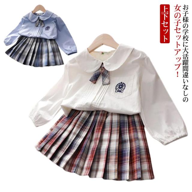 キッズ フォーマル 女の子 上下セット 制服 子供スーツ スクール制服 セットアップ スカート 韓国子供服 白シャツ 可愛い ハロウィン コスプレ コスチューム 入園式 卒園式 卒業式 発表会 ステージ衣装 演出用 学園祭 文化祭 パーティー 春夏秋 送料無料