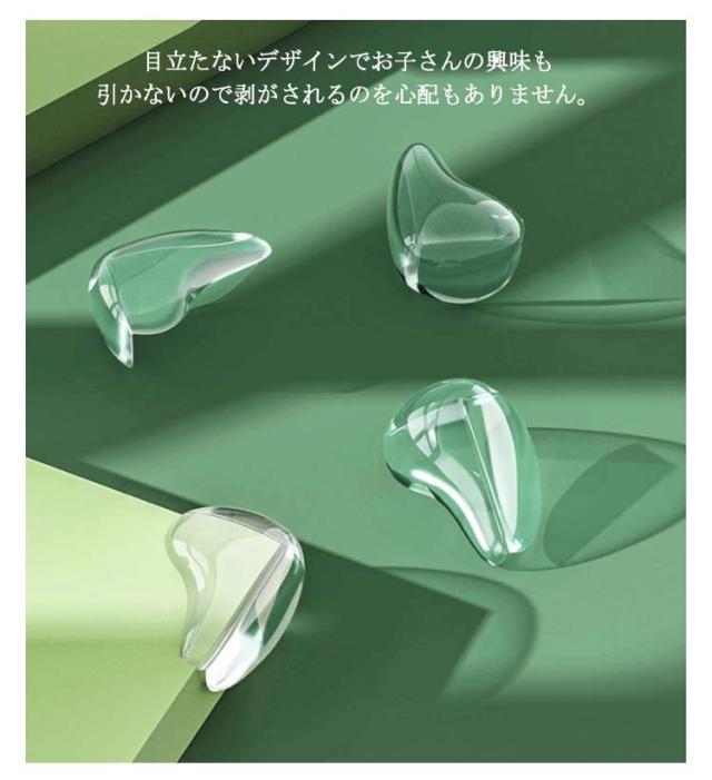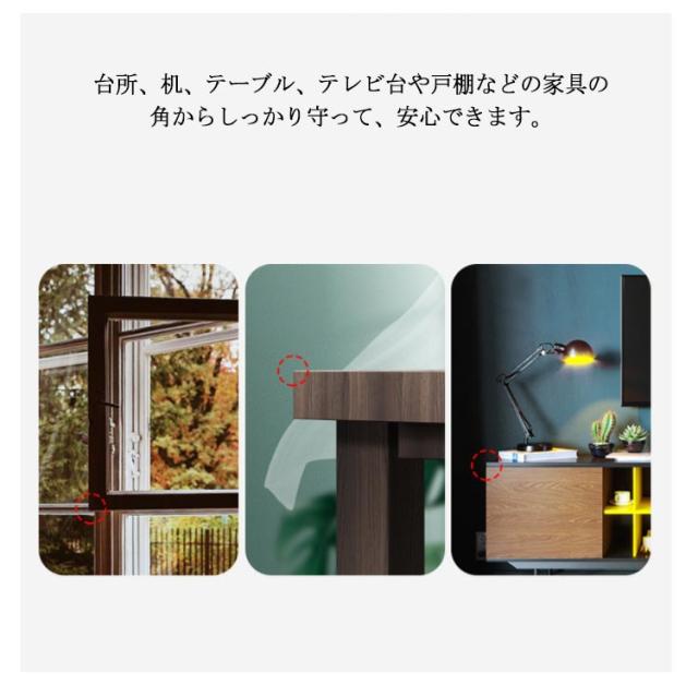 | 夜光タイプで夜間でも安心 クッション性が高くて、万が一子供がぶつかっても全然平気です。 台所、机、テーブル、テレビ台や戸棚などの家具の角からしっかり守って、安心できます。 透明で無毒のPVC素材、実用的で無臭、柔らかく。 透明なので家具の材質感を損なわず角の衝突を和らげてくれます。 目立たないデザインでお子さんの興味も引かないので剥がされるのを心配もありません。 両面テープを使って、水洗いできます、取り付けやすく、触り心地も良く、両面テープ貼り付きで便利です。 | |