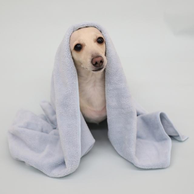 ふんわり柔らかく肌触りも滑らかでなので、タオルドライだけではなくブランケットとして、またベッドに敷いてもお使いいただけます。冬の寒さが苦手な子にもおすすめです。
