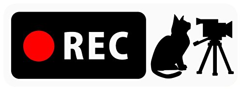 ドライブレコーダー搭載ステッカー 「猫とビデオカメラ」 Banner Type (背面の狭いSUV・スポーツワゴン向け) (マグネット) (ホワイト) (5.2cm×14.8cm) b15