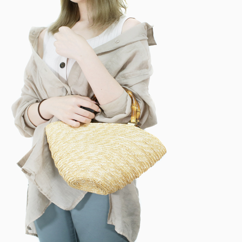 かごバッグ 麦わら カゴバッグ 草編み ベージュ バンブータイプ 夏 ハンドバッグ