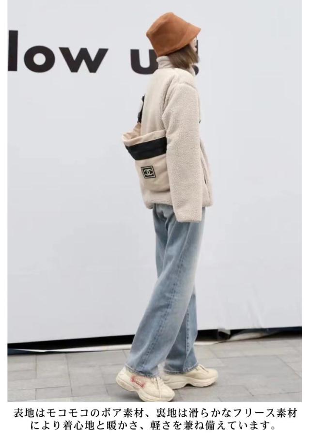 | 汎用性抜群な毎年大人気のボアブルゾン登場! 身幅やアームホールなどにゆとりを持たせた、リラックスシルエットのスタンドカラージャケットです。 パイピングデザインやポケット、襟の別布に配色を施し、シンプルで合わせやすいデザインです。 内側にはフリースを使用し、秋冬の厳しい寒さにも対応可能。 着回し力抜群なカラー4色展開で、幅広い年代の方にオススメです。 表地はモコモコのボア素材、裏地は滑らかなフリース素材により着心地と暖かさ、軽さを兼ね備えています。 ご自宅でお手入れ可能なのも嬉しいポイントです。 厚みのあるヘビーウェイトのスウェットや、ニットをインナーにしても着膨れしにくいゆとりがあるので、ワイドパンツでカジュアルに着こなすのがオススメです。 配色切り替えのカラーと合わせた差し色コーデでも様になります。 アウトドアやキャンプなどのレジャーシーンにも重宝します。 女性のオーバーサイズの着用もオススメです。 | |