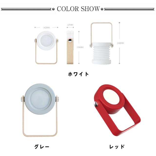 | ・用途や気分によって2パターンの形状で楽しむことができるランタン。 ・ナイトライト、トーチライト、読書灯、ランタン…と様々な使い方のできる北欧風マルチランタン ・ジャバラになったランプシェードは開閉ができる2way仕様。 ・ランプシェードを閉じた状態では、持ち手を握れば懐中電灯に、木のところを脚にして立てると読書灯として使えます。 ・ライト部分は360度回転するので、お好みの位置に調節できます。 ・蛇腹を開けば、ナイトランプや授乳ライトとして便利なランタンや提灯に早変わりします。 ・閉じてコンパクトにすることで収納も場所を取りません。 ・明るさは3段階で調整ができ、上部をタッチするだけの簡単仕様。 ・USB充電式で、容量1200mAhのリチウムイオンバッテリーを内蔵する。充電時間は約2時間。 | |