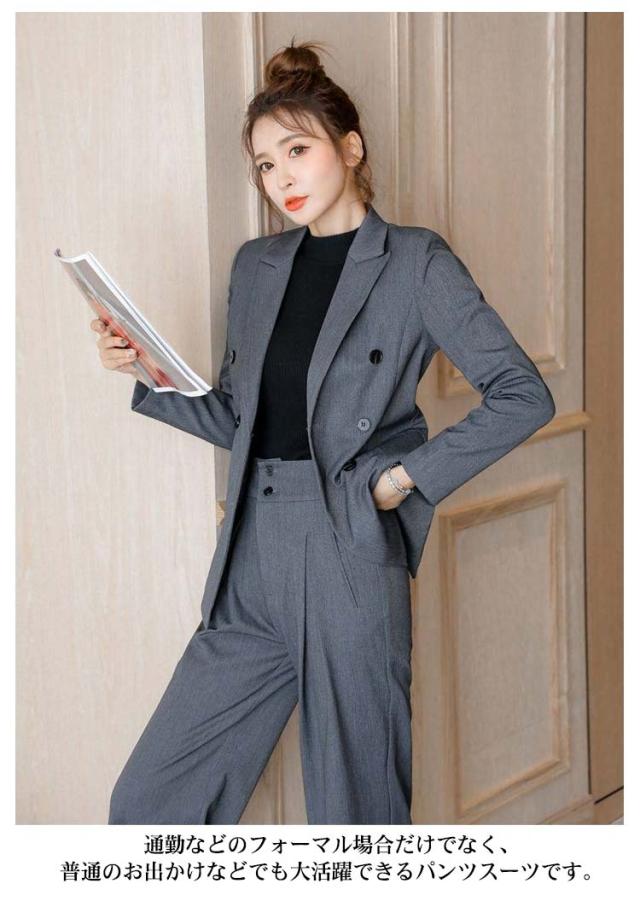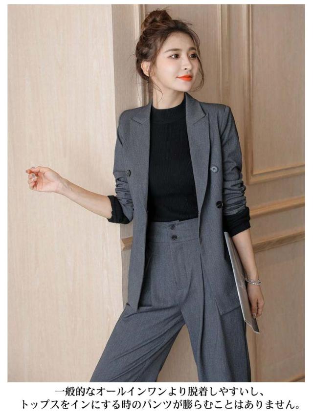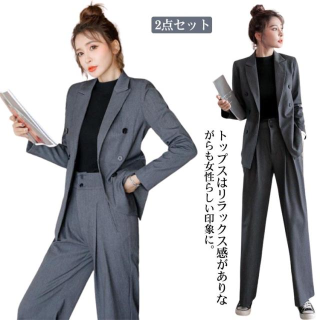 ワイドパンツ セットアップ かっこいい レディース テーラードジャケット パンツスーツ グレー 2点セット パンツ 冬 大きいサイズ フォーマル 通勤 入学式 卒業式 母親 ママスーツ 秋 30代 40代 50代