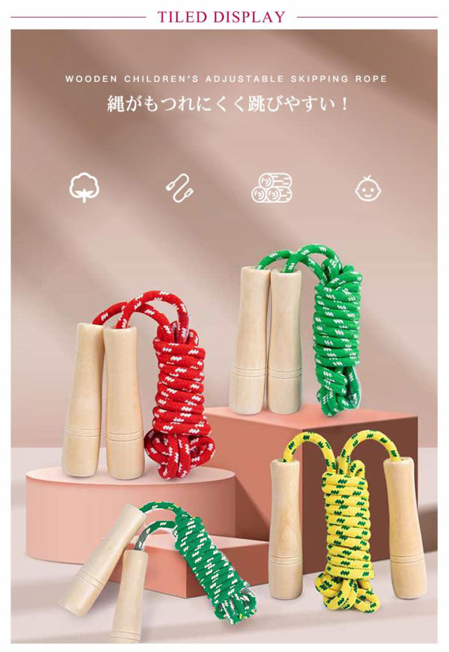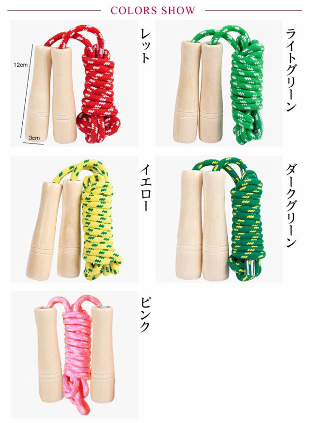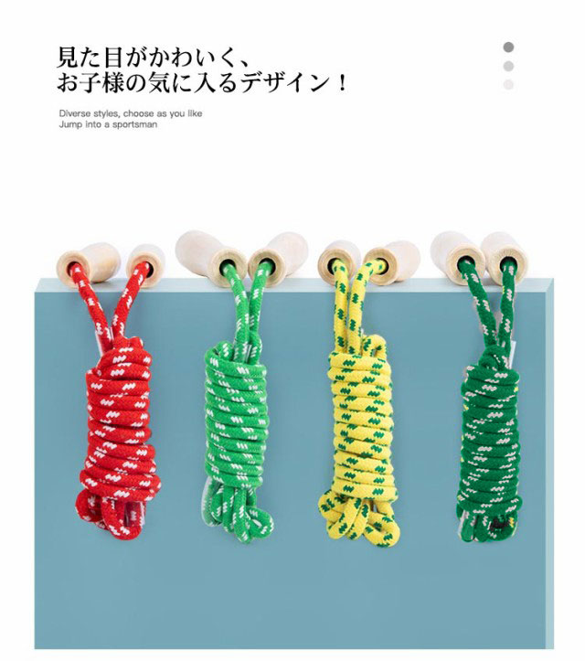 | 子供でも持ちやすく滑りにくいグリップ! 縄がもつれにくく跳びやすい! 頑丈で壊れにくい構造! 足に当たっても痛くなりにくい設計! 見た目がかわいく、お子様の気に入るデザイン! | |