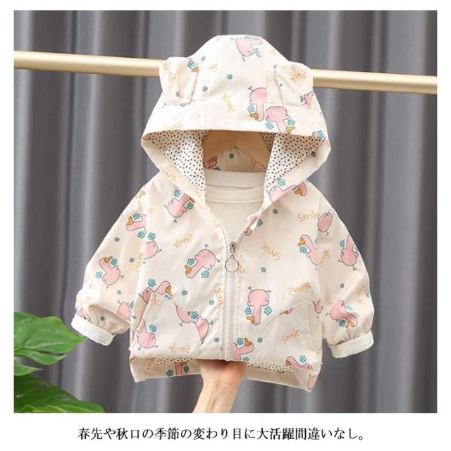 長袖 フード付き アウター マウンテンパーカー 女の子 ブルゾン 子供用 ジャケット ジップアップ シンプル おしゃれ ジュニア服 薄手 春秋 キッズ