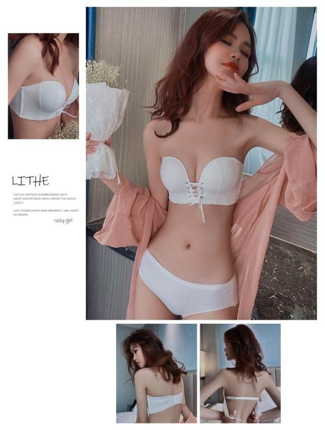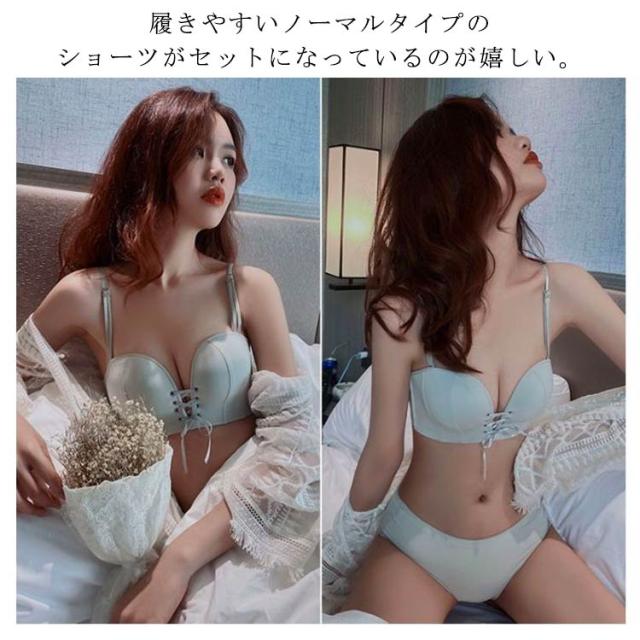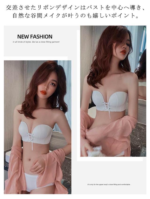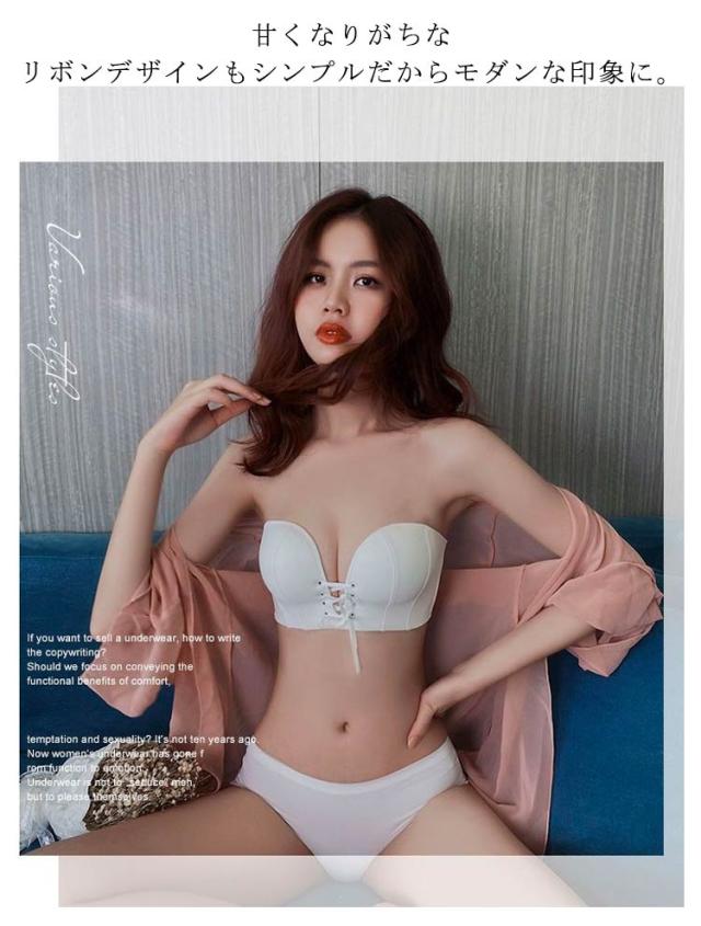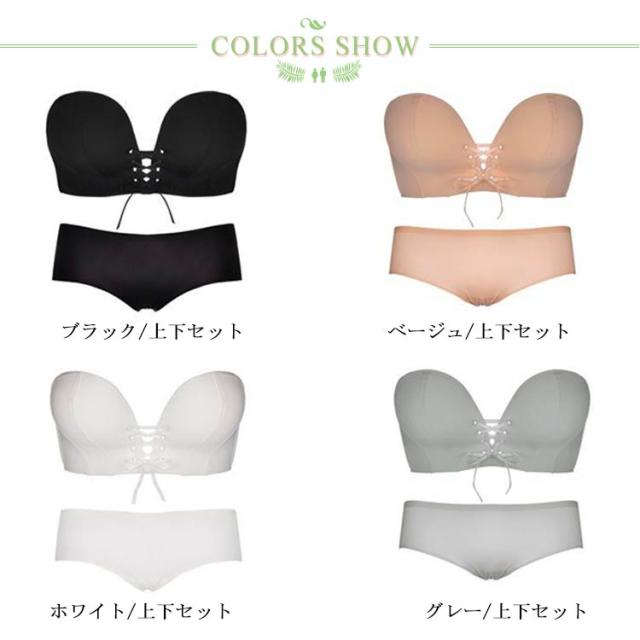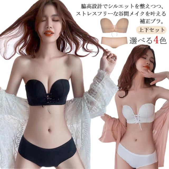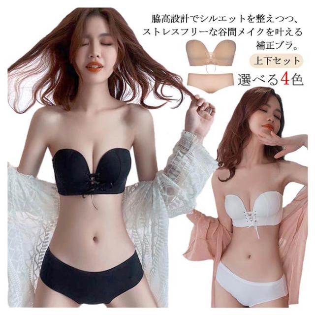 盛れる ショーツ ブラ ブラジャー レディース セット ストラップレスブラ ブラジャー リボン 結婚式 谷間 85A 落ちない 滑り止め付 ずれない 送料無料 チューブトップ 補正ブラ ドレス用 下着 70A 70B 75A 75B 80A 80B 肩紐なし