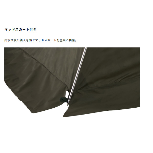| 主素材 | [フレーム]7001アルミ [フライシート]難燃性ポリタフタ [メッシュ]デビルブロックST |