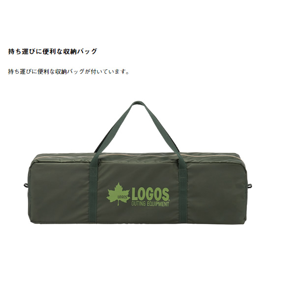 | 構成 | フライシート、カーセット用ジョイント、メインフレーム、リッジフレーム、ペグ、収納バッグ、フレーム用収納袋、ハンマー、小物袋 |
