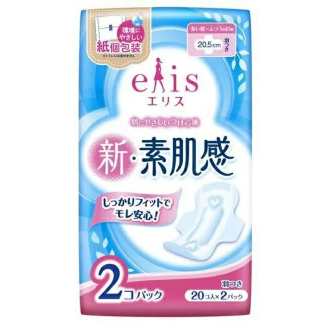 【医薬部外品】エリス 新・素肌感 多い昼〜ふつうの日用 羽つき(20枚入*2個パック) 生活用品 生理用品 消耗品 elis 昼用