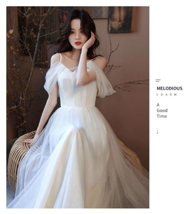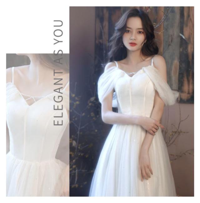 | ウェディングドレス。 オフショルダータイプでデコルテや アクセサリーをキレイに見せてくれます。 スレンダーなラインとふわふわな質感の相性バツグン。 マキシ丈で大人っぽいドレスです。 | |
