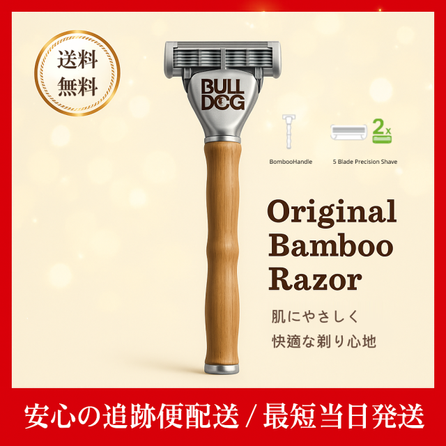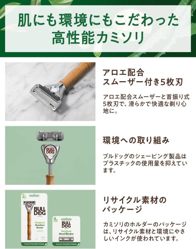 ブルドッグ オリジナルバンブーホルダー 替刃2コ付 剃刀 髭剃り うぶ毛 眉毛 シェービング用カミソリ 普通肌用 環境にやさしい メンズグルーミング