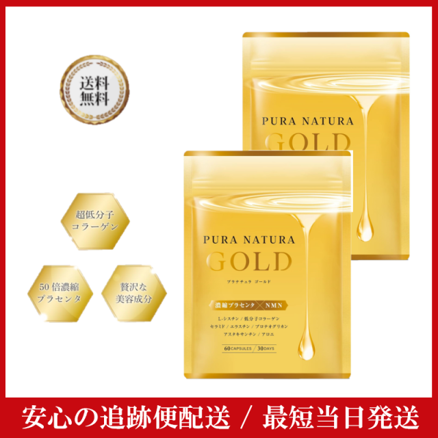 プラナチュラゴールド PURANATURA GOLD 60粒 1日2粒 30日分 ×2袋 濃縮プラセンタ NMN L-シスチン 馬プラセンタ リポソームビタミンC 超低分子コラーゲン セラミド エラスチン プロテオグリカン アスタキサンチン プラセンタサプリ 美白 サプリ