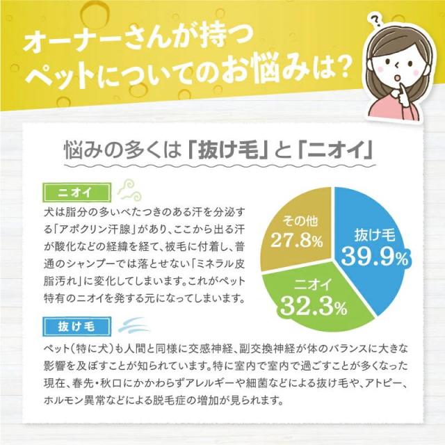 ペットのニオイの元となる毛穴の汚れを洗浄し、