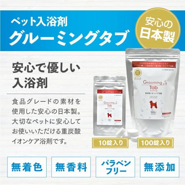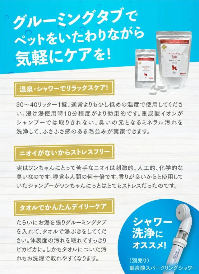 ペット用 重炭酸イオン入浴剤 グルーミングタブ 10錠 ホットアルバム 炭酸泉タブレット 日本製 犬 猫 ペット用品 お散歩 中性pH 無香料 無着色 無添加 入浴料 ペットの皮膚 被毛に優しい 重炭酸 イオンケア浴剤 合成洗剤不使用 合成界面活性剤不使用