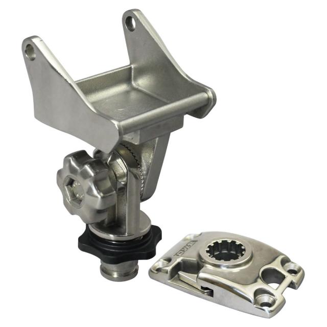 ●ボートのブルワークにネジで固定するベースが付属しています。