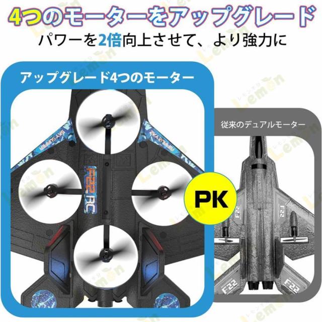 【強力な4モーター】従来の2モーターから強力な4モーターにアップグレードして、より優れた安定性、操縦性、滑空性能が実現できます。効率的な空力設計により、離陸および着陸するときに、安定的な飛行姿勢を保ちます