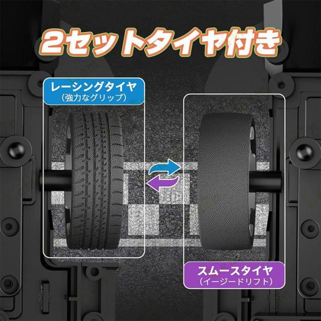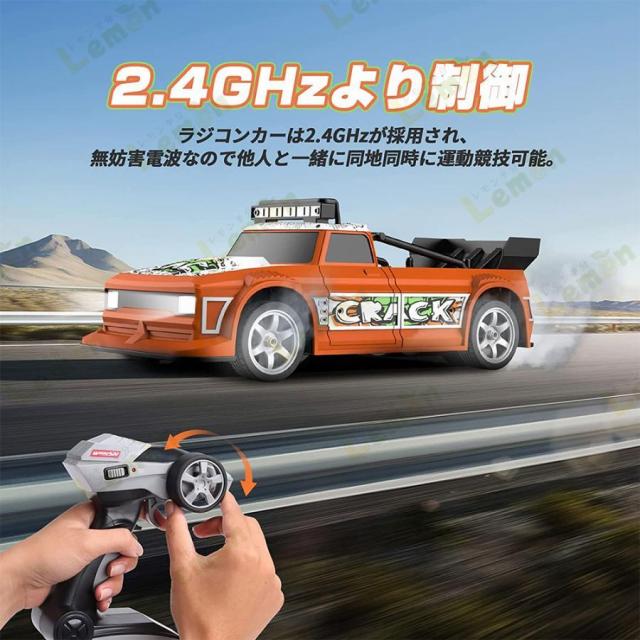 【ドリフトタイヤ付き&無階段変速】このラジコンカーは2セットタイヤが付き、ドリフトタイヤに交換して本格的なドリフト走行ができるようになります。レーシングタイヤはグラベル、スノー、マッド、デザート路面でのレースに対応するグリップ力を保証します。無段階変速リモコンを採用し、スムーズなレース走行を実現しました。
