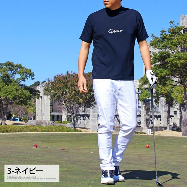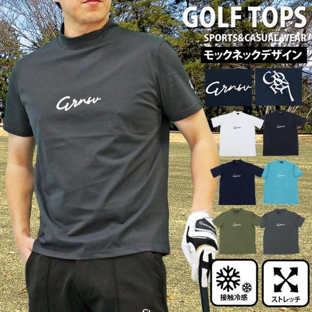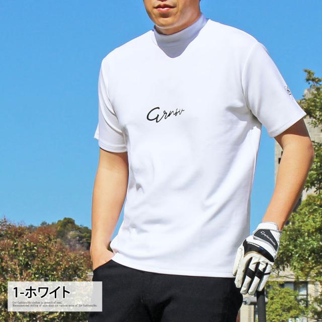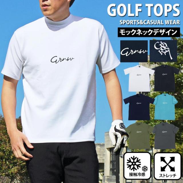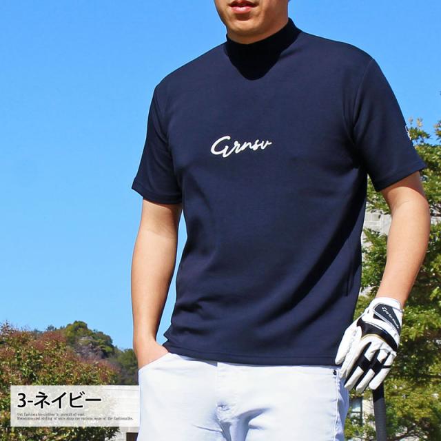 M~3XL 春夏 新作 送料無料 ゴルフウェア モックネックシャツ メンズ 大きいサイズ GIORNO SEVEN ジョルノセブン ハイネック ゴルフ 機能性 おしゃれ 接触冷感 ストレッチ 半袖 ロゴ 筆記体 トップス ポロシャツ Tシャツ 無地 春夏 ゆうパケ