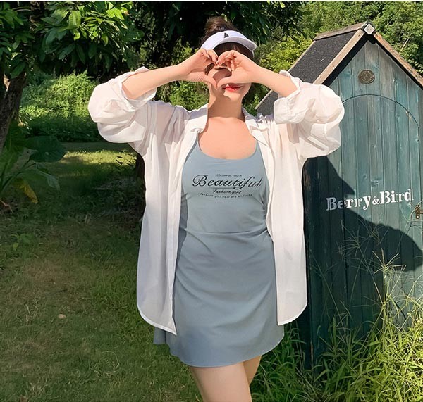 【レビュー投稿で+5%還元】ワンピース水着 大きいサイズ 水着 ぽっちゃり レディース ぽっちゃり水着 袖あり 体型カバー 韓国 可愛い オールインワン シースルー キャミ 肩出し オフショルダー 無地 グレー グリーン クロス 海 沖縄 温泉 大人 韓国風 女性 2L 3L 4L 5L 6L