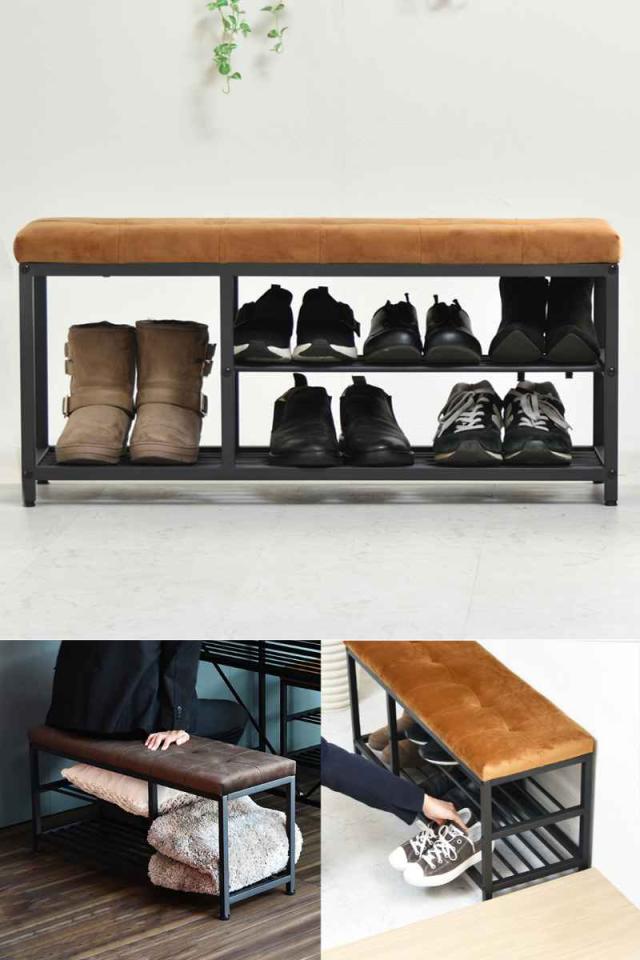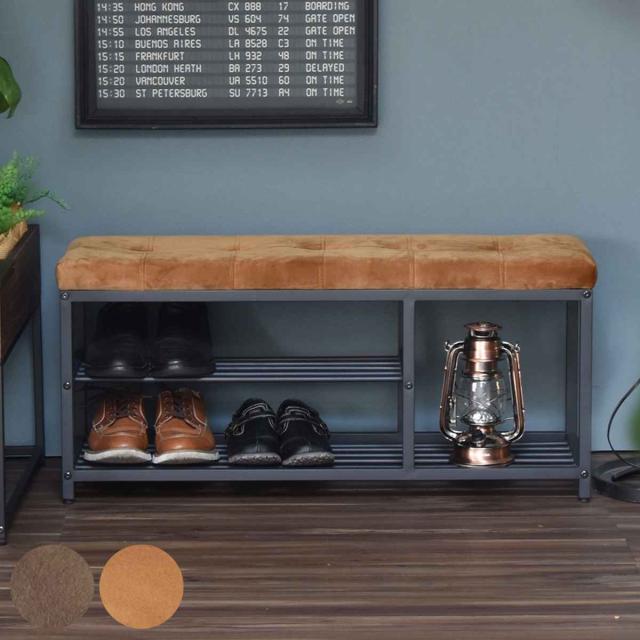 《 LH10339 約 90cm いす 腰掛 腰かけ 靴収納 玄関収納棚 スリッパラック リビング ダイニングベンチ ダイニングチェア ダイニングスツール 食卓 ヴィンテージ かっこいい カッコイイ オープンフレーム 通気性 見える収納 》