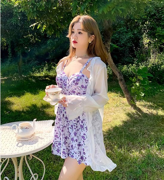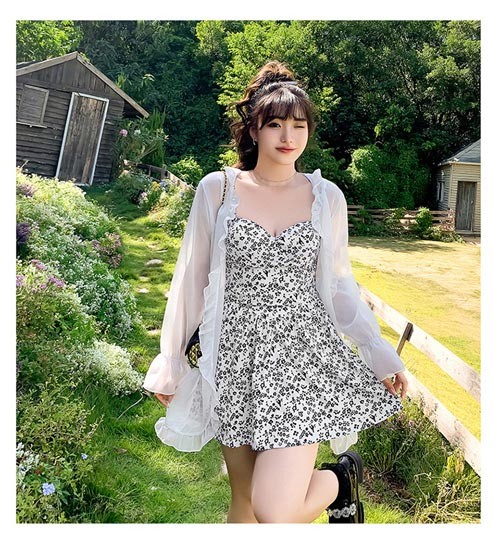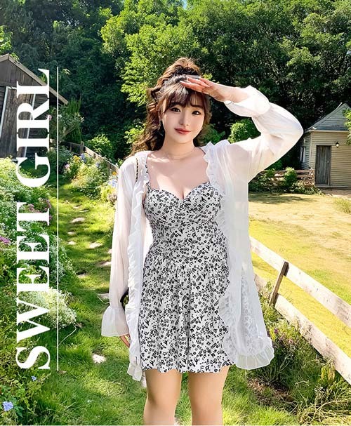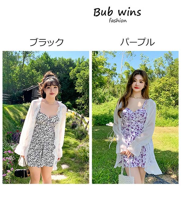 【レビュー投稿で+5%還元】ワンピース水着 大きいサイズ 水着 ぽっちゃり レディース ぽっちゃり水着 袖あり 体型カバー 韓国 可愛い オールインワン シースルー キャミ 肩出し オフショルダー 無地 黒 ブラック クロス 海 沖縄 温泉 大人 韓国風 女性