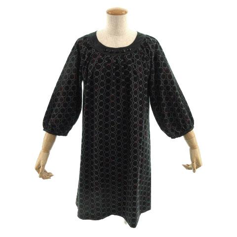 【中古】CONCETTOCARINO ワンピース 七分袖 バルーンスリーブ ひざ丈 リングドット 黒 ブルーグレー 赤 1