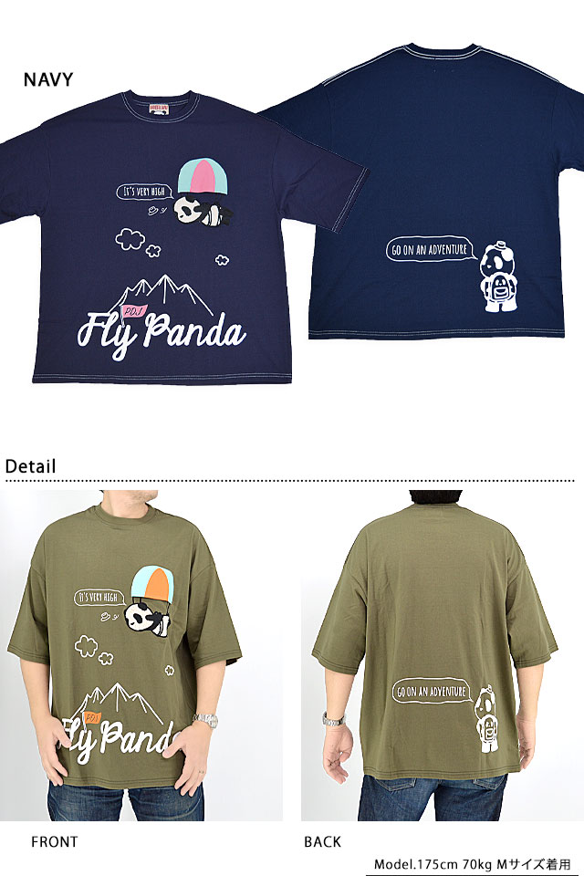 和柄ブランド【錦】の姉妹ブランドとして誕生した、お茶目なパンダをモチーフとした【PANDIESTA JAPAN】より「フライパンダ半袖Tシャツ(523473)」のご紹介です。 通気性と吸汗性に優れた生地をボディーに採用した、ビッグシルエットの半袖Tシャツが登場しました。 今回はスカイダイビング中のパンディエスタをモチーフの主役に採用しました。 背中には、パンダ柄のリュックを背負ったパンディエスタが旅に出ようとしている姿がプリントされています。 ゆったりとしたシルエットで、男女問わず着用して頂ける一着です。 | ||||||||||||||||||||