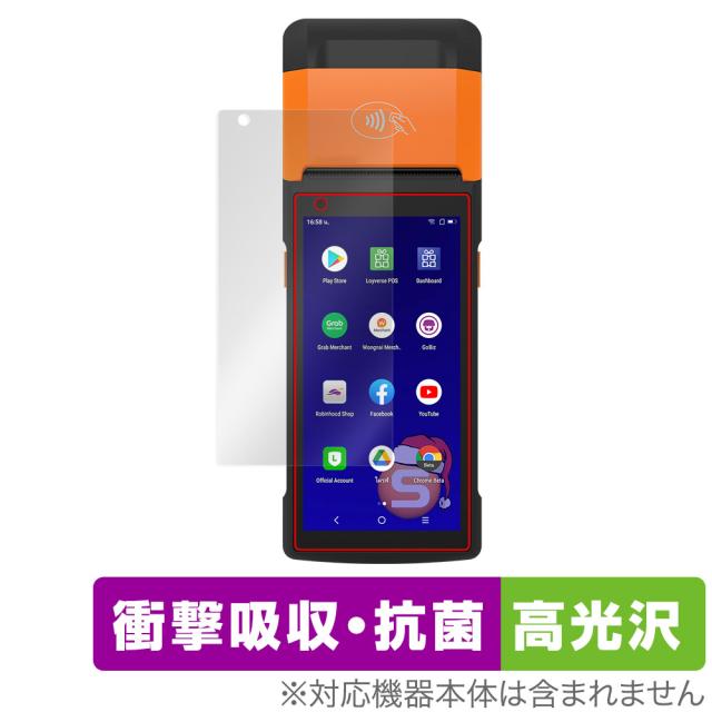 SUNMI V2s 保護 フィルム OverLay Absorber 高光沢 サンミ V2s スマートハンディ型POSターミナル 衝撃吸収高光沢 ブルーライトカット 抗菌