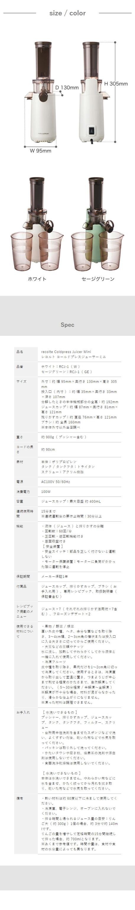 [ recolte コールドプレスジューサー ミニ ]