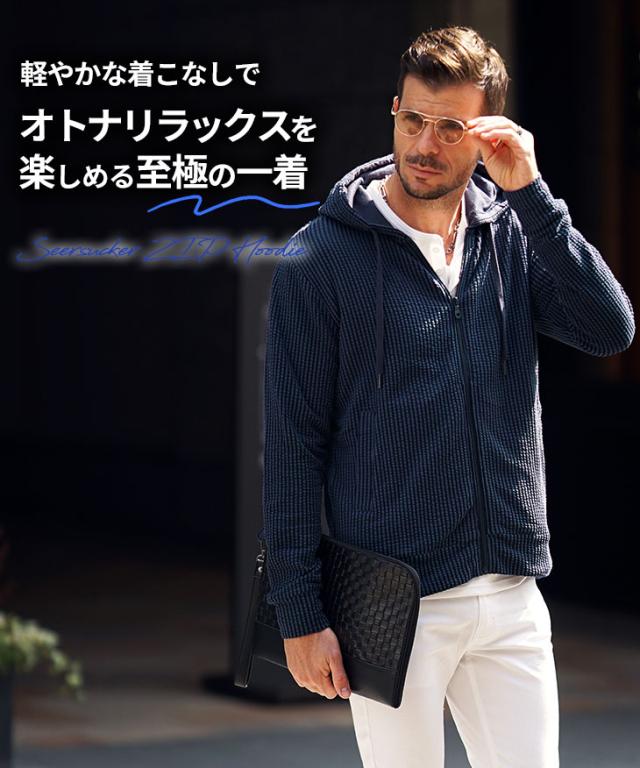 軽やかに季節を纏う『シアサッカーZIPパーカー』【シアサッカーZIPパーカー】■Design/デザインシアサッカー素材で軽快に纏うZIPパーカー。生地に凹凸をもたせたシアサッカー素材で清涼感を演出し、伸縮素材も配合することで肌なじみが良く、身体のラインに添った美シルエットに。春夏でも軽やかに着用できるため、サーフシーンやアウトドアなシーンでも大活躍。リラックス感と爽やかさを併せ持つオトナのZIPパーカーで軽快に着こなせ。■Material/素材感綿とポリエステルを使用し、柔らかく軽やかな着用感が特徴。シアサッカー素材のため肌にへばりつかず、汗ばむ時期も爽やかに着こなせるのが嬉しいポイント。
