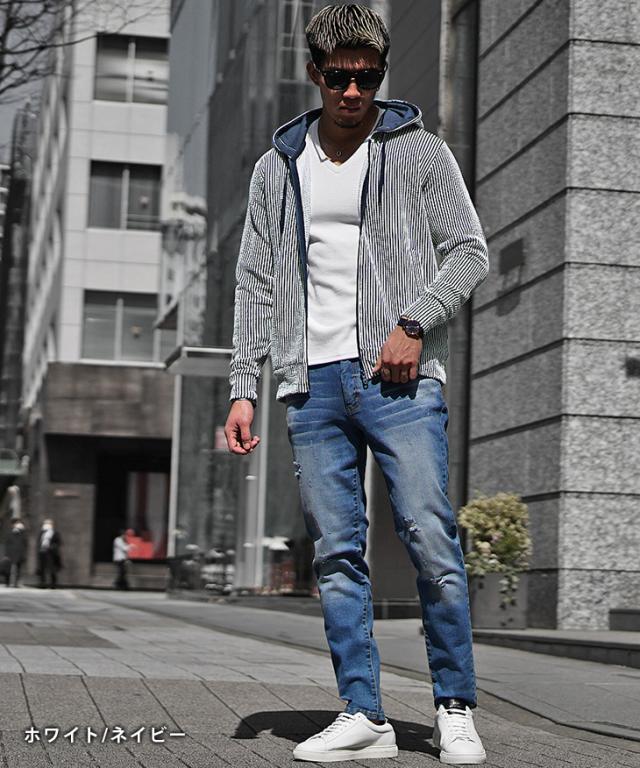 パーカー メンズ 薄手 ジップパーカー ジップアップパーカー メンズ ストライプ シアサッカー パーカ ジップアップ パーカー フーディー 白 黒 清涼素材 ネイビー スリム 細身 タイト 部屋着 長袖 お兄系 オラオラ系 ちょいワル 夏服 夏 夏新作 新作 夏服 夏 夏新作