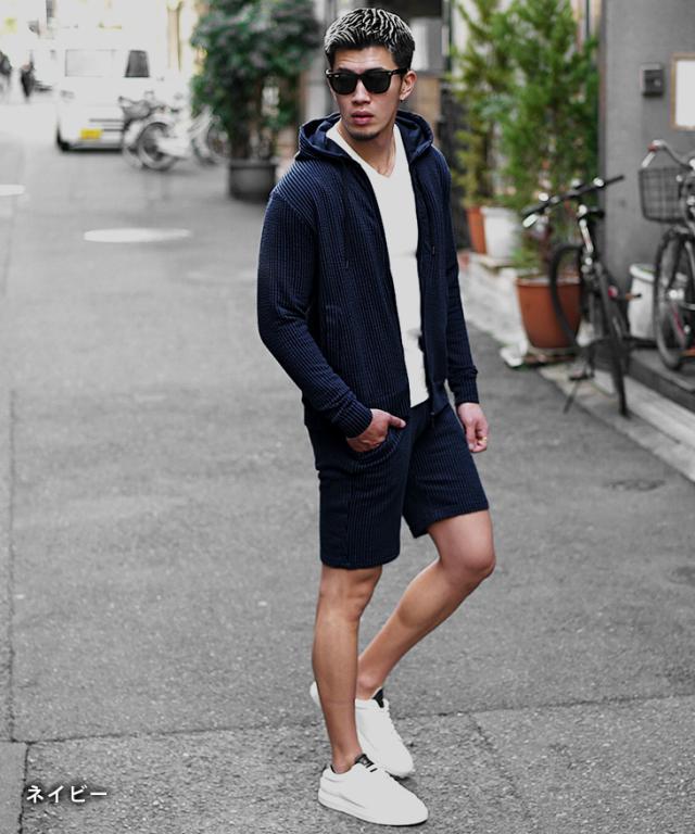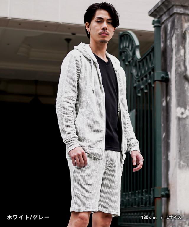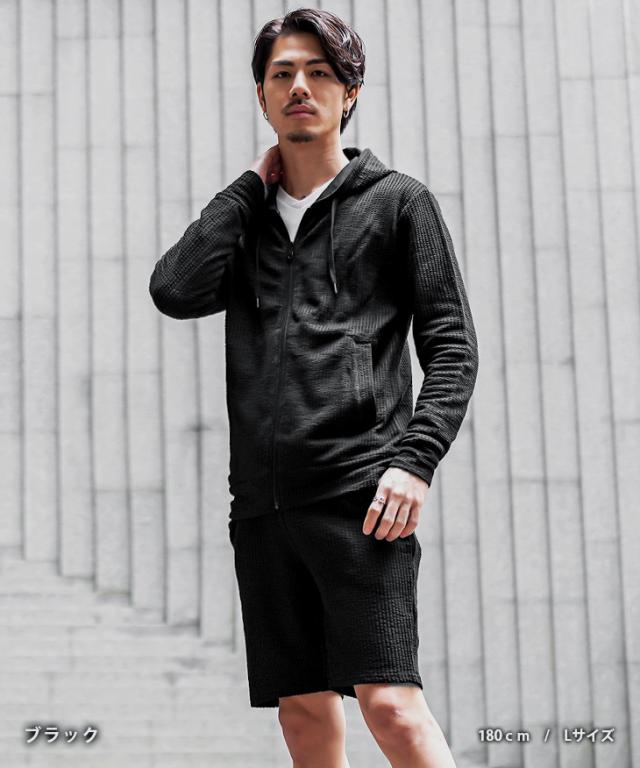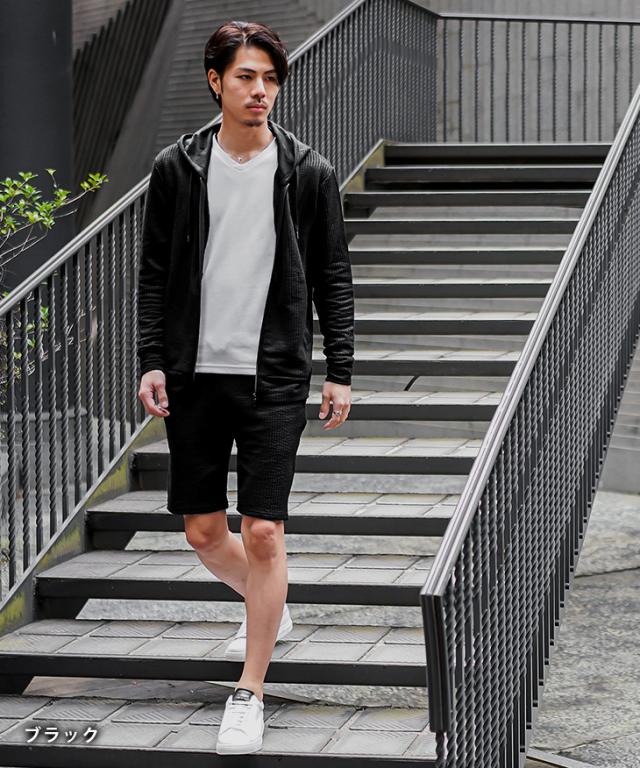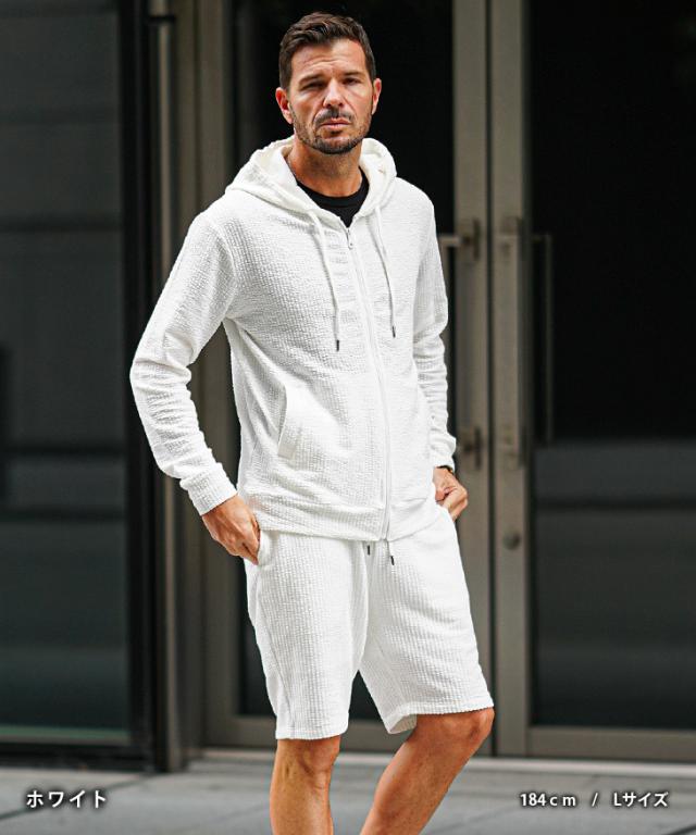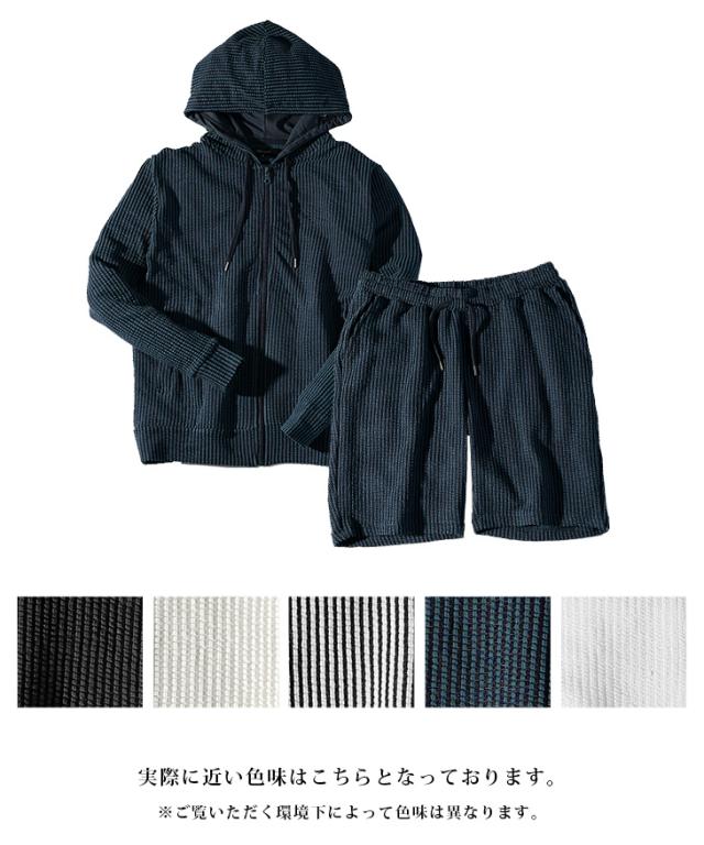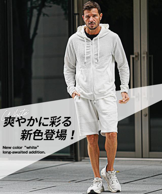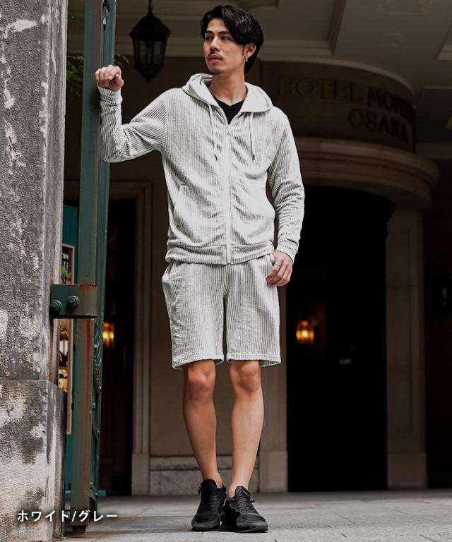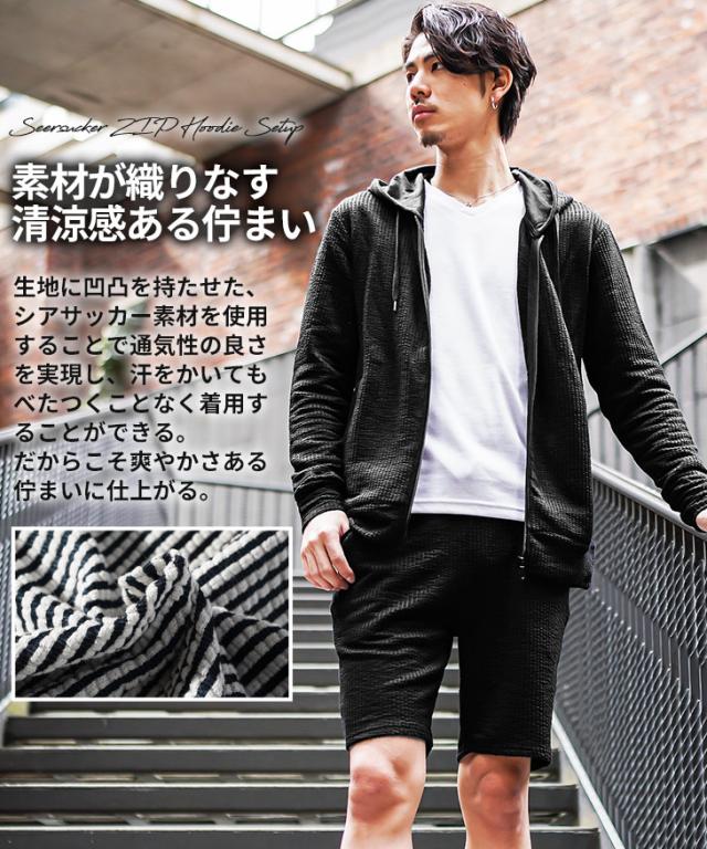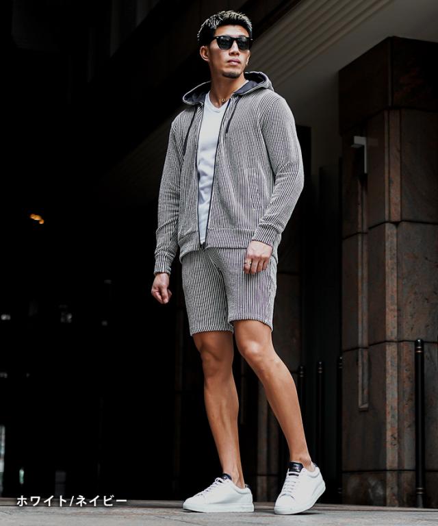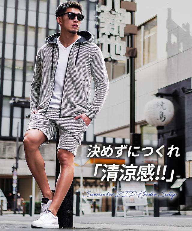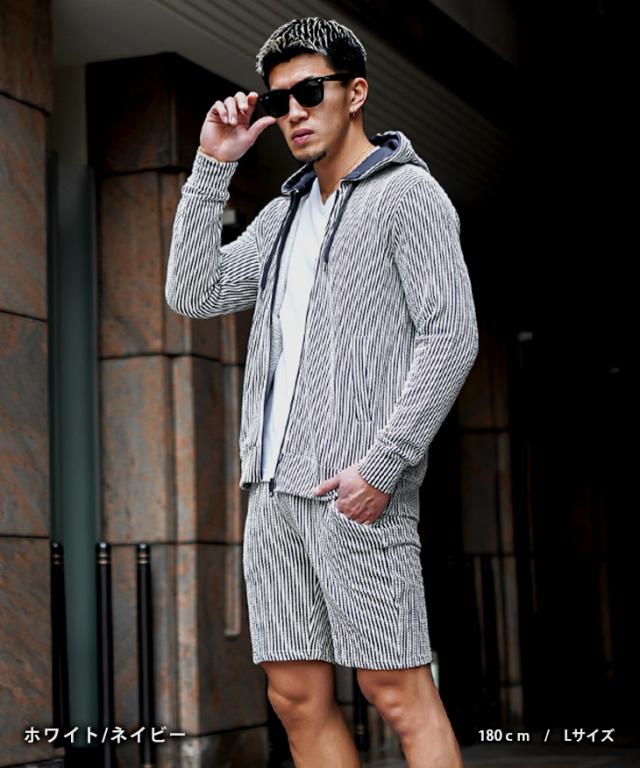 セットアップ メンズ ブランド パーカー メンズ 薄手 ハーフパンツ メンズ 短パン ジップパーカー 半ズボン ショートパンツ 上下 シアサッカー ストライプ 白 黒 2点セット 父の日 細身 春服 春物 春夏 メンズファッション お兄系 オラオラ系 ちょいワル joker ジョーカー