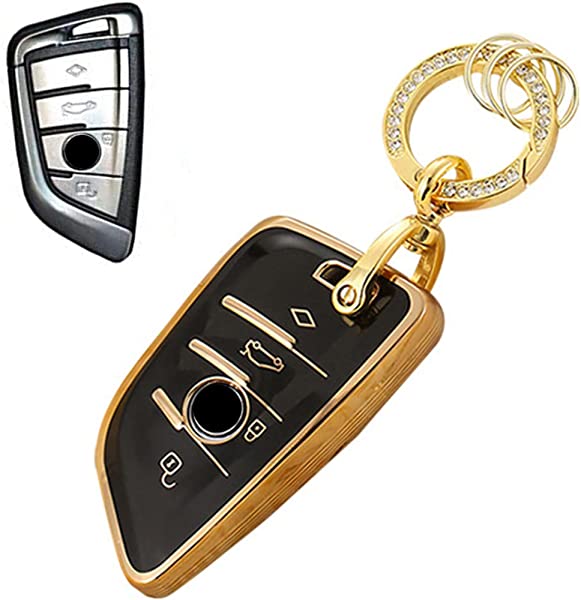 キーケース BMW用 スマートキーケース キーカバー 4ボタン 柔らかい TPU BMW専用設計 BMW1 2 5 7シリーズ X1 X2 X3 X5 X6 X7 Z4 等に適用 キーホルダー 刀型 (ブラック)