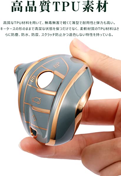 上質なTPU材料:キーケースにはTPU素材を採用しており、軽さを確保した上で耐久性も備えています。 TPU素材のキーケースはオイル耐性、耐水性、カビ耐性、防塵性があります。豪華さを演出してくれます。本キーケースを取り付けるだけで愛車のスマートキーは高級車のキーに様変わりします。