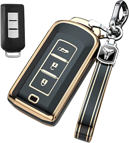 キーケース 三菱用 スマートキーケース キーカバー 3ボタン 柔らかい TPU 三菱専用設計 キーホルダーアウトランダー RVR ekワゴン ekスペース ミラージュ アイミーブ アウトランダー ekスペース ランサーエボリューション デイズ デイズルークス リモコンキー 等適用 キーケース (ブラック)