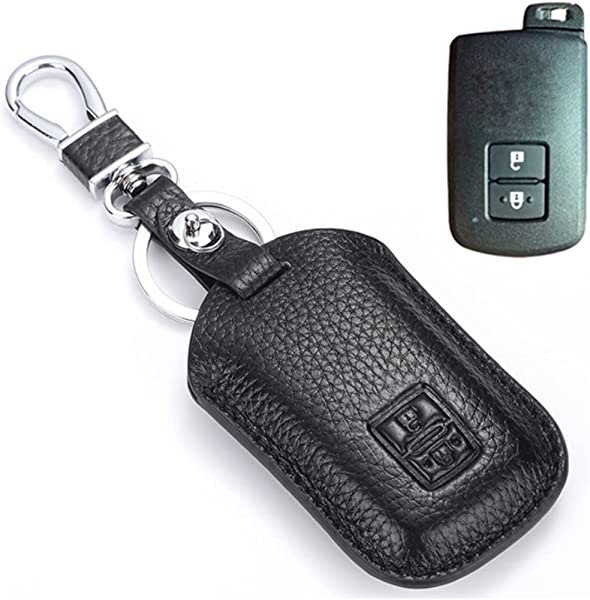キーケース トヨタ 用 スマートキーケース キーカバー 2ボタン 本革 レザー トヨタ 専用設計 TOYOTA プリウス アクア ヴィッツ カローラ 86 IQ マークX クラウン SAI ウィッシュプリウスα 等に適用 キーホルダー (ブラック)