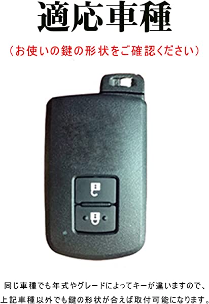 適応車種:TOYOTA アクア/86/マークX/SAI/プリウス 30系/40系プリウスα/プリウスPHV/カローラ/カローラアクシオ/カローラフィールダー/ヴィッツ/クラウン/ウィッシュ/アベンシス/IQ/ラクティス/ランドクルーザープラド等; 適合スバルトレジア/ BRZ/ インプレッサ/ XV/ フォレスター等に適用 。 ※ 年式により異なる場合がありますので、画像のキーの形状をご確認下さい。 画像のキーの形であれば適合です。お使いのスマートキーの形状を必ず確認ください(写真参照)