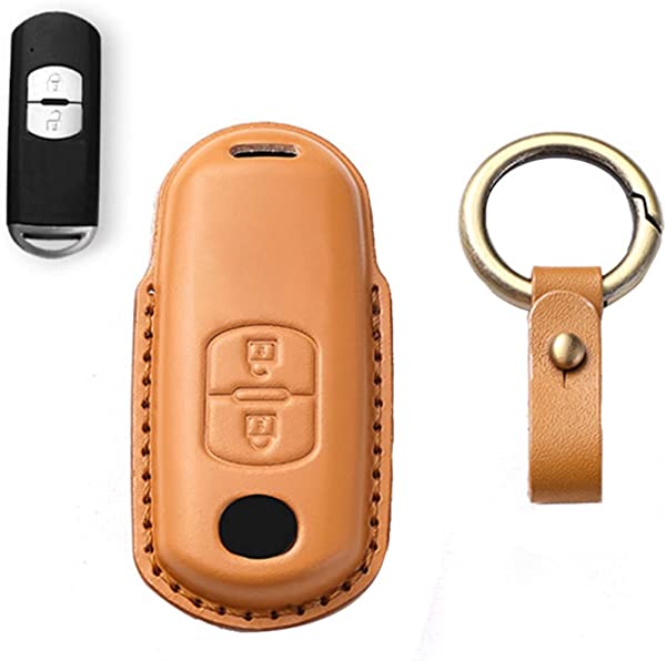 キーケース マツダ 用 スマートキーケース キーカバー 2ボタン 本革 レザー マツダ 専用設計mazda CX-5 CX-3 CX-8 MPV アクセラ スポーツ セダン アテンザ ワゴン デミオ ビアンテ プレマシー ベリーサ ロードスター車用 手触りいい 汚れ 滑り 傷 防止 オシャレ リモコン キーホルダー (黄色)
