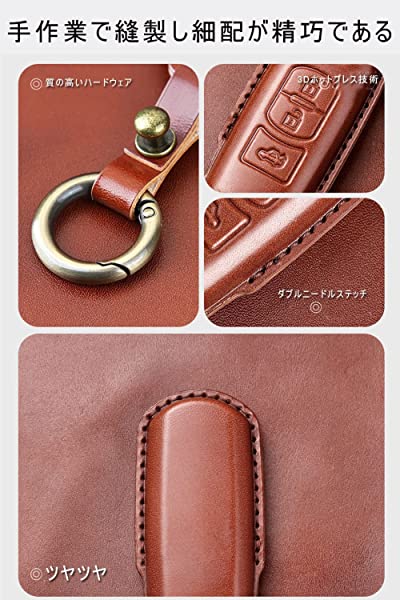 高級素材:キーケースは上質で手触りの良い本革素材を使用したスマートキーケースです。レザー素材に太いステッチを施し、耐久性が良く、クールでおしゃれなキーケースとなっております。豪華さを演出してくれます。本キーケースを取り付けるだけで愛車のスマートキーは高級車のキーに様変わりします。