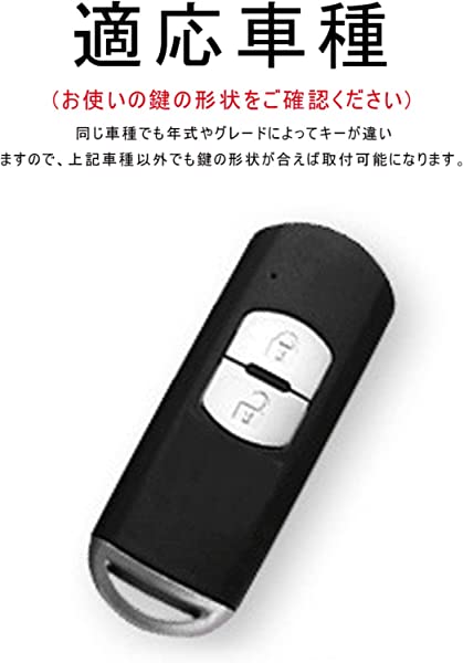 適応車種:Mazda CX-5 CX-3 CX-8 MPV アクセラ アクセラスポーツ アクセラセダン アテンザ アテンザセダン アテンザワゴン デミオ ビアンテ プレマシー ベリーサ ロードスター(お使いの鍵の形状をご確認ください)※上記車種以外でも鍵の形状が合えば取り付け可能になります。購入する前に適合キーモデルの画像と一致しているかどうかをご確認してくださいませ。