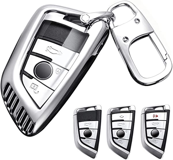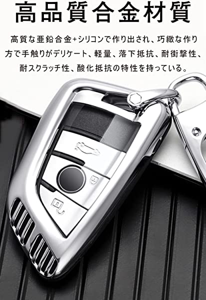 キーケース BMW用 スマートキーケース キーカバー 亜鉛合金 シリコン TPU 保護 ケース 傷 汚れ 防止 2/3/4ボタン bmw 専用 設計 BMW用 キーケース 1 2 3 5 6 7 8 シリーズ X1 X2 X3 X4 X5 X6 X7 Z4 M8 等に適用 キーホルダー (シルバー)