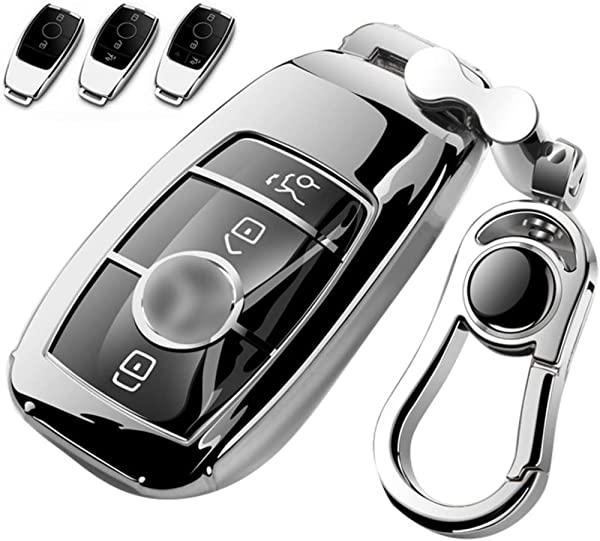 メルセデスベンツ 対応 キーケース Mercedes Benz車用 スマートキーケース キーカバー 2/3/4ボタン高級 TPU カバー 手触りいい 高級 軽量 ベンツ キーカバー ベンツ キックス 専用設計 キーホルダー付き E クラス S クラス CLS Coupe C クラス B クラス A クラス 新型 CLA GLC GLE G クラス エレクトリック 車用 キーカバー スマートキーケース (シルバー)