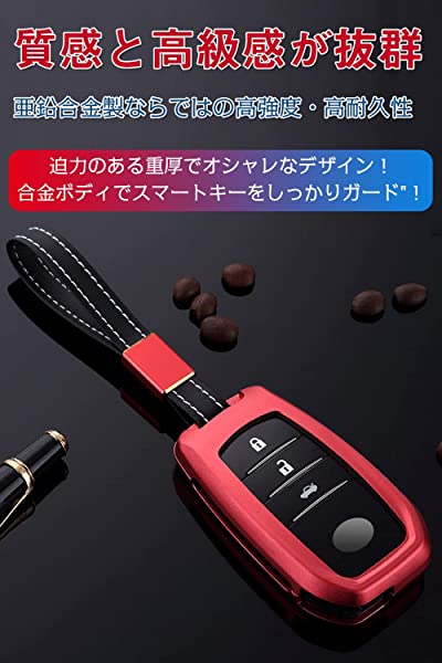 キーケース トヨタ車用 合金 トヨタ スマートキーケース キーホルダー トヨタキーカバー 新型 ハリアー キーホルダー2個 80系 ハイラックス GUN125 ランドクルーザー200系 ヤリス ミライ MARK 専用 2/3ボタン (赤)