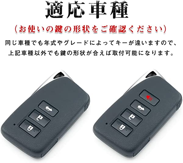 適合車種:レクサス GS10系(250/300/350/450h) H24/2- レクサスIS30系(250/350/300h) H25/5- レクサスNX10系(200t/300h) H26/7- レクサスRC10系(350/300h) H26/10- レクサスRC F10系 H26/10- レクサスRX20系(200t/450h) H27/10- レクサスLX200系(570) H27/9- 。同車種でも年式によりスマートキーの形状が異なる場合がございます。お使いのスマートキーの形状を必ず確認ください(写真参照)。